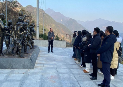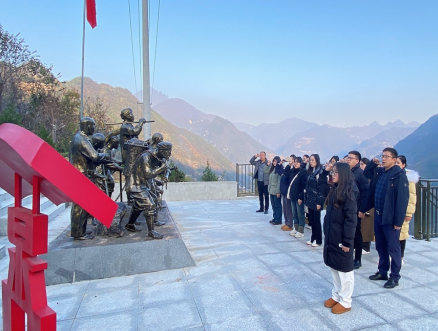 12月6日下午,调研团队前往位于巴东县泉口村内的党性教育基地——泉口英模陵园。在英模陵园内,全体党员高举右手,面对鲜红的党旗,庄严宣誓,一起重温入党誓词,铮铮誓言,神圣豪迈。