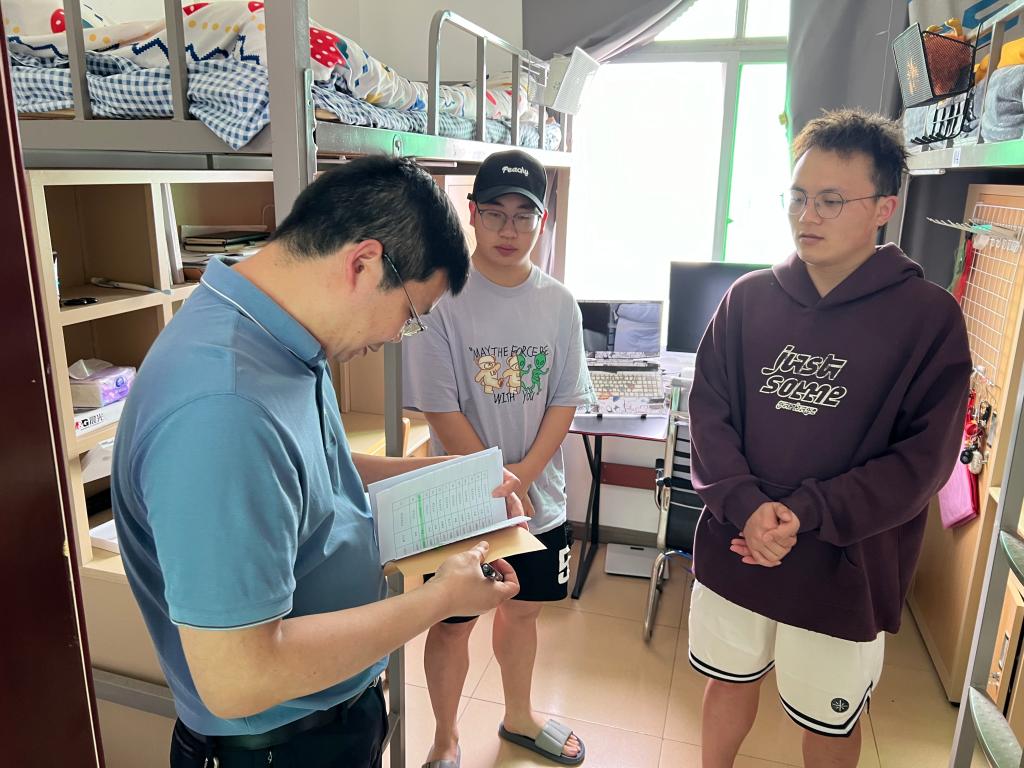 同时,胡盛留意到寝室卫生情况,温馨提示学生为了身心健康要保持整洁环境。对于同学们反馈的相关问题,他迅速记录相关信息,并承诺会与学校后勤等相关部门沟通协调,确保学生良好的生活和学习环境。