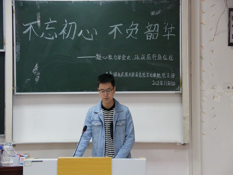 本网讯(通讯员 王婵媛 见习通讯员 黄丽兰 王晓霞/文 钟静双 孙航/图)11月11日下午,我院学生党支部在德智楼9B208教室开展以“不忘初心,不负韶华--凝心聚力学党史,砥砺前行新征程”为主题的党日活动。我院学生党支部书记杨婷,全体预备党员、发展对象和入党积极分子参加此次活动。