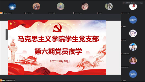 6月10日晚,我院学生党支部在线上腾讯会议开展第六期党员夜学活动。马克思主义学院学生党支部全体党员参与此次学习,学生党支部书记杨婷主持。