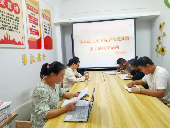 9月26日,我院学生党支部在达人七栋学生活动功能室和线上腾讯会议同步开展第七期党员夜学活动。马克思主义学院学生党支部全体党员参与此次学习,学生党支部书记杨婷主持。