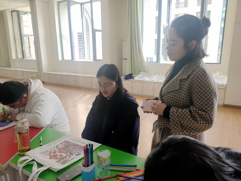 活动伊始,参与者在“心健中心”老师的带领下,精心挑选好自己喜爱的绘有不同图案的布袋。随后,由参与者全身心地投入到艺术涂鸦中并将布袋制作成为自己喜欢的样式。在涂鸦结束后,大家各自介绍自己的涂鸦作品并分享自己在涂鸦过程中不同的情感变化和心理体验,“心健中心”老师也适时给予参与者们支持与鼓励。此次活动得到了相关老师和参与学生的一致好评,参与者从涂鸦过程中感受到了绘画的乐趣和满满的成就感。