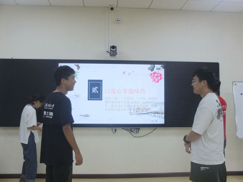 本次活动分为诚信名言对号坐、口是心非趣味答、合作背叛双向选、击鼓传花谈感受四个环节。诚信名言对号坐环节中,参赛人员根据诚信名言,答出相关作者或者上下句,通过这种形式拓宽学生诚信的知识面,加深学生对于诚信的理解。在击鼓传花谈感受环节,随机选取学生畅谈参与本次活动的感受。其中,蔡丹认为,此次活动拉进学生之间的距离,以娱乐的形式,进一步深化对诚信的认识;吴丁鑫从诚信的利弊出发,鼓励学生做诚信人、做诚信事。