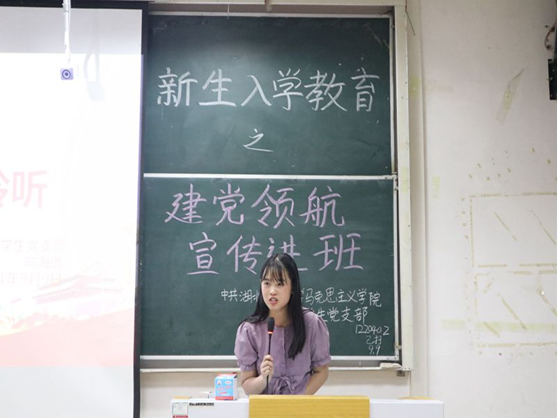 本网讯(通讯员 田金爽/文 钟静双/图)9月9日晚,我院学生党支部在德智楼9B108教室开展以“建党领航,宣传进班”为主题的入党知识宣讲活动。我院大一全体新生参与此次活动。