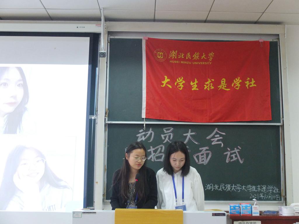 本网讯(通讯员 谭瑞秋/文 钟静双/图)10月10日上午,我院大学生求是学社在德智楼9B210教室成功开展动员大会暨招新面试活动。部分校社团管理部干部、兄弟社团干部受邀出席,我院大一全体学生以及大学生求是学社部分会员参与此次活动。