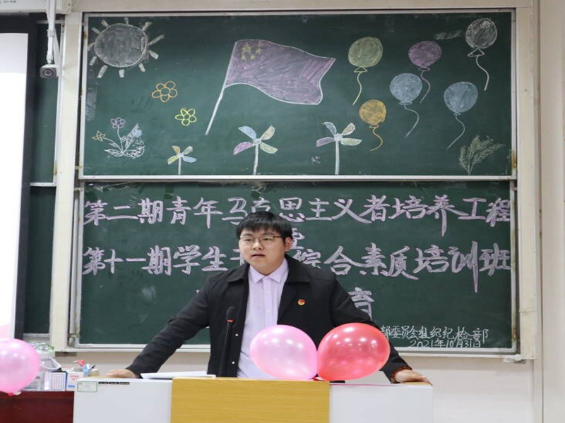 活动伊始,我院团总支组织纪检部部长田金爽对青年马克思主义培训、干部培训考核结业办法、培养方案及后期工作等进行详细的讲解。他希望各位学员把握本次学习机会,增强思想道德素质,加强学习与管理能力,同时,他提出大家应该在学习过程中应该扎实理论功底,丰富实践经验,增强自身的政治鉴别能力的要求。随后,学生代表发言,祁丹悦阐明自己进入青马班的初心,她指出学生应该细心,有责任心、耐心与自信心,不断加强自身理论知识的学习。庞媛君分享自己的工作心得,强调学生干部要有责任感,要谦虚好学,言必信,行必果,坚持实干旗帜,秉承马院精神。