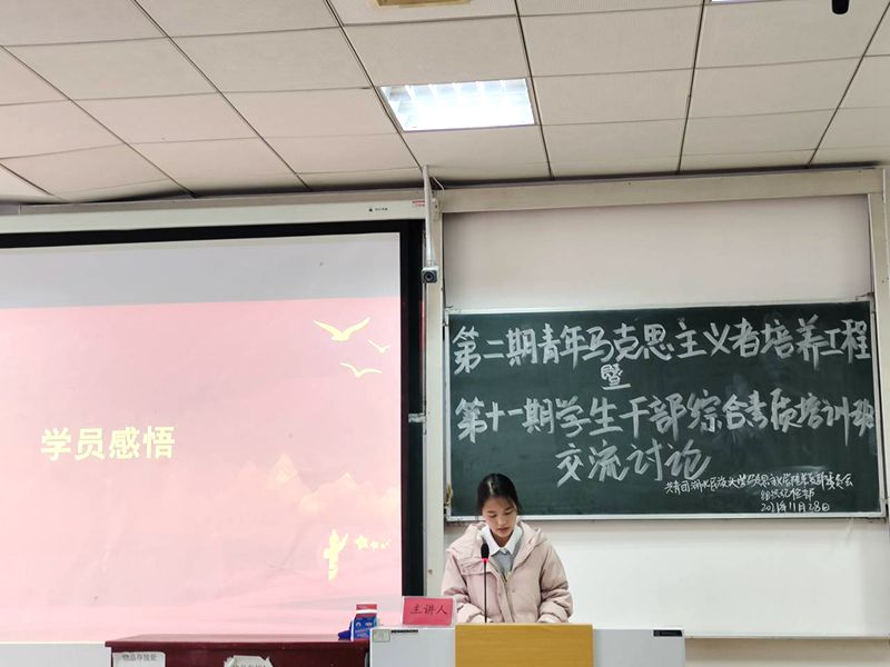 本网讯(见习通讯员胡闯 付荣花/文 赵兴玥/图)11月28日下午,我院于德智楼9B210教室顺利举行第二期青马工程暨第十一期学生干部综合素质培训班交流谈论课。我院第二期青马工程全体学员及大一全体学生干部参与此次交流讨论。