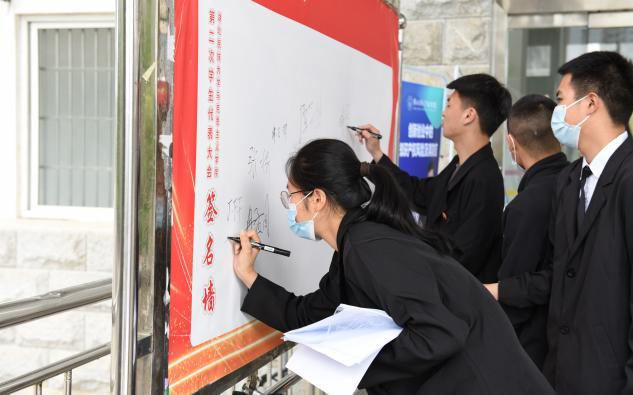 至此,大会第一次全体会议结束,由各代表团前往各分会场召开代表团会议。随后,各代表团团长向主席团报告讨论结果,主席团进行第二次会议,讨论通过《大会选举办法》(草案)、《3044am永利集团3044noc马克思主义学院学生会章程》(草案)等提交大会审议。期间,与会代表在德智楼进行了现场签名活动,反响良好。