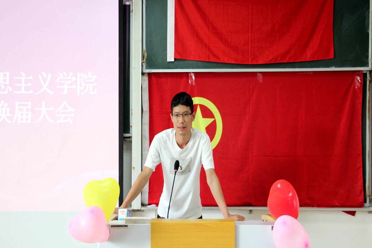 最后,杨婷作结。她对即将退任的学生干部给予诚挚的寄语和高度赞扬。同时,她指出新一届学生干部在岗位上要做到认真负责,不断提升自我素质,以为同学服务为宗旨,发挥好桥梁与纽带作用,为马院奉献自己的青春力量。