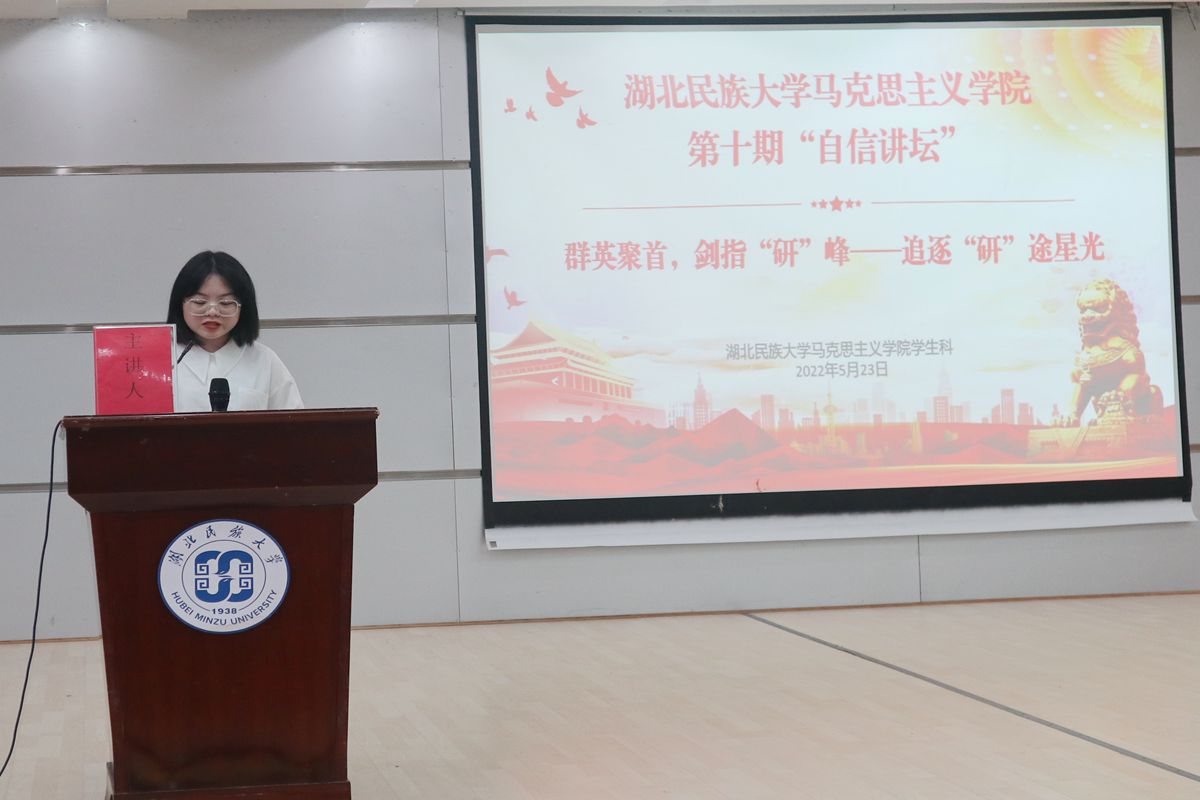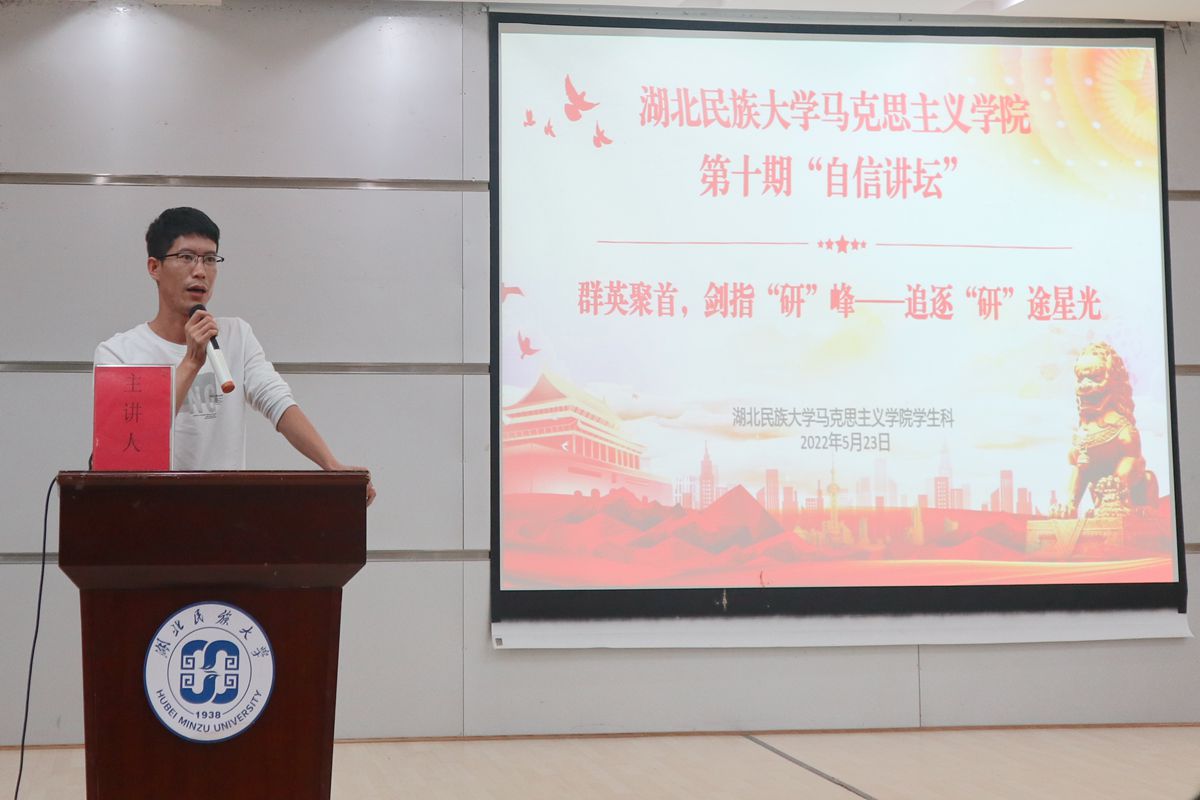 我院举办以“群英聚首,剑指‘研’峰——追逐‘研’途星光”为主题的第十期自信讲坛活动