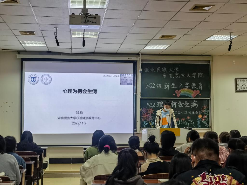 11月5日晚,我院于德智楼9B210教室开展以“心理为何会生病”为主题的心理健康教育活动。特邀永利官网心理健康教育中心教师邹松进行直播授课,我院全体大一学生参与此次活动。
