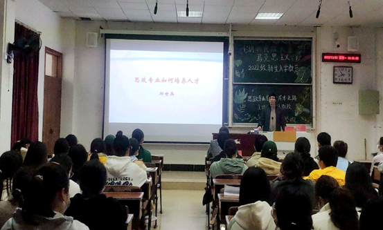 11月21日下午,我院于德智楼9B208教室开展新生入学教育之“思政专业如何培养人才”的主题教育活动。我院邱世兵副教授受邀出席并担任主讲人,团总支书记毛召及大一全体学生参与此次活动。活动由毛召主持。