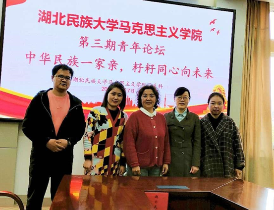 4月7日下午,我院于德智楼三楼会议室开展以“中华民族一家亲 籽籽同心向未来”为主题的第三期青年论坛。学校学工处民族事务工作办公室教师谭俊妮、张芫、姜蒙生,我院毛泽东思想和中国特色社会主义理论体系概论教研部主任崔应美,我院学生科科长杨婷应邀出席,我院部分学生代表参加此次活动。