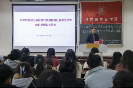 开班仪式后,罗成富以“牢牢把握习近平新时代中国特色社会主义思想的世界观和方法论”为主题进行第一次授课。
