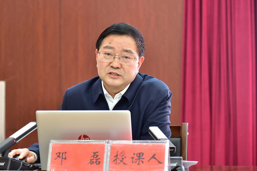 邓磊以《从文化自信到文化自强》为题,运用生动详实的案例深入浅出地阐释了文化是国家和民族的灵魂以及增强文化自信的必要性。他表示,我们要从文化自信走向文化自强,必须坚持党的领导、坚持马克思主义指导、坚持社会主义核心价值观,筑牢意识形态安全防线;必须坚持把马克思主义基本原理同中国具体实际相结合、同中华优秀传统文化相结合,与时俱进推进中华文化的现代化;必须坚持体现继承性与民族性、原创性与现代性、系统性与专业性,构建中国特色哲学社会科学体系;必须解决“卡脖子”问题、增强国家的国际话语权、让中华文化走向世界,从而增强中华文化的影响力。