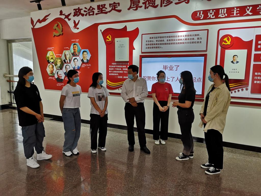 6月22日,校党委书记吴建清带领校办、学工处、校团委等单位负责人到我院看望思政专业毕业生。