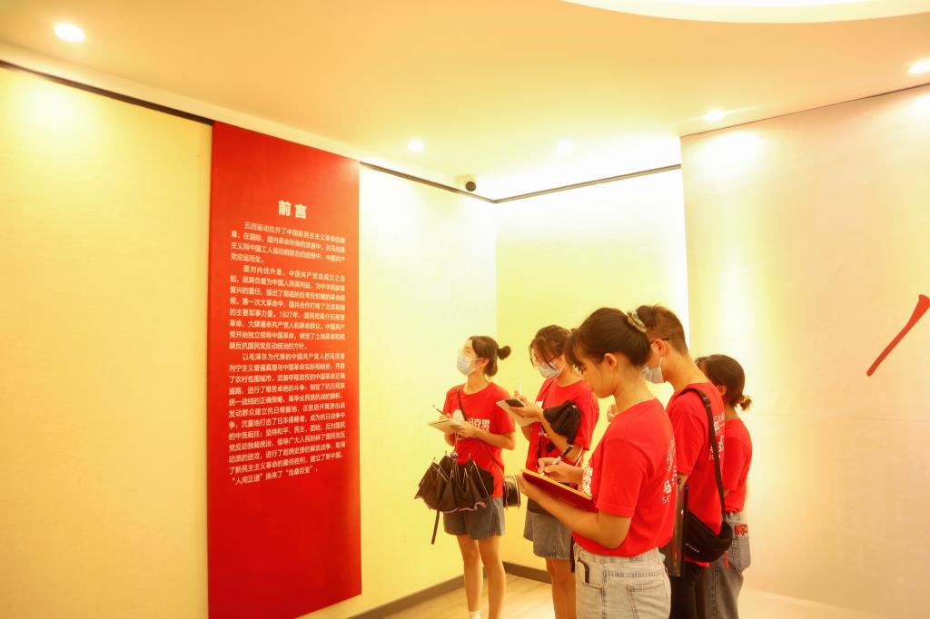 实践活动期间,团队师生前往辛亥革命武昌起义纪念馆、中央农民运动讲习所旧址、毛泽东同志旧居、中国共产党第五次全国代表大会旧址、八七会议展览馆、李汉俊烈士之墓等一系列红色教育基地。在中国共产党第五次全国代表大会旧址的展馆内,实践队队员们参观到多方收集中共五大代表使用过的部分实物及复制品。透过这些文物,可以看见中国共产党人在内忧外患的时代里仍然牢记使命,不改初心。实践队在参观八七会议展览馆时,通过参观展览馆内陈列的一系列旧照片和旧物,深刻的了解到此次会议是党的发展过程伟大的转折,提出了“枪杆子里面出政权”,为中国革命指明了方向。该展览厅以时间为轴,展示着八七会议筹备、进行以及结束的整个过程,其中体现出无数的革命先辈为革命信念前仆后继,传递自身光热,孕育胜利的伟绩。活动最后一天,实践队队员们怀着悲痛而沉重的心情来到李汉俊烈士之墓。队员们为李汉俊烈士献花,在李汉俊墓前,全体成员默哀一分钟,向革命烈士传递最深情的思念和最崇高的敬意。