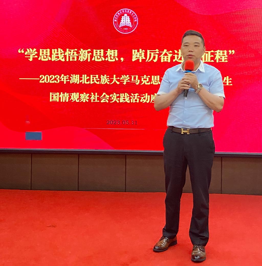 5月31日,我院在利川市汪营镇齐跃桥村,举行“学思践悟新思想,踔厉奋进新征程”——2023年3044am永利集团3044noc马克思主义学院研究生国情观察社会实践活动。马克思主义学院党总支副书记张明波,汪营镇党委书记熊伟,思清农业有限公司董事长温华健,驻村第一书记丁恒,州政府办公室驻齐跃桥村尖刀班成员,以及我院部分研究生参加有关活动。
