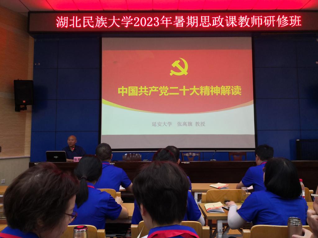 张高旗教授为老师们讲授了《中国共产党二十大精神解读》专题教育课。张教授从“过去五年的工作和新时代十年的伟大变革”、“指导思想”、“新时代新征程中国共产党的使命和任务”、“十二个方面的工作(十二条措施)”四个方面详尽地解读了党的二十大精神。在张教授的激情讲授中,学员们对党的二十大精神有了进一步的认识和感悟。