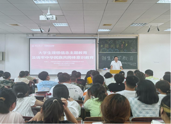 学院党总支书记向驰进行了“大学生理想信念主题教育及铸牢中华民族共同体意识教育”主题讲座。向驰书记结合自身经历,通过生动的语言让学生们认识到努力学习的重要性。他强调,要做好自身发展规划,学会感受知识的魅力,并对学生提出三点希望:一是要有目标;二是要多去图书馆,多阅读;三是要多和老师、同学沟通交流。在综合能力提升方面,他鼓励学生通过加入学生组织和社团锻炼能力,积极参加师范生技能大赛等学科竞赛,提高创新意识和实践能力,同时学会充分利用时间丰富课余生活。