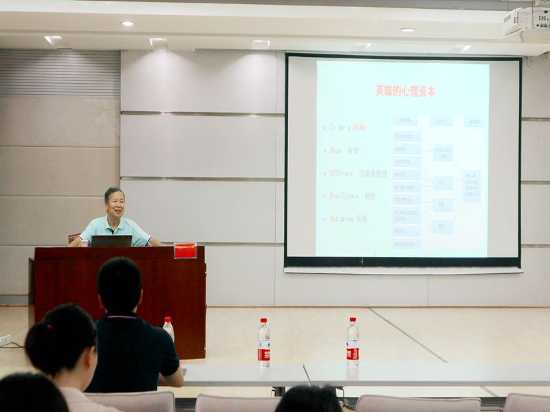本网讯(通讯员 谭绍杰 田欣欣 李小曼/文 吴丁鑫/图)6月27日晚,华中师范大学教授、华大新父母研究院院长、中国心理学会学校心理学和老年心理学专委会委员、湖北省心理卫生协会副会长、老年心理学专委会主任郑晓边莅临我院,在德智楼三楼多功能报告厅进行以“未来教师的幸福力”为主题的学术讲座。讲座由鲁帅主持,我院教师崔蕤及全体大一、大二学生参加此次活动。