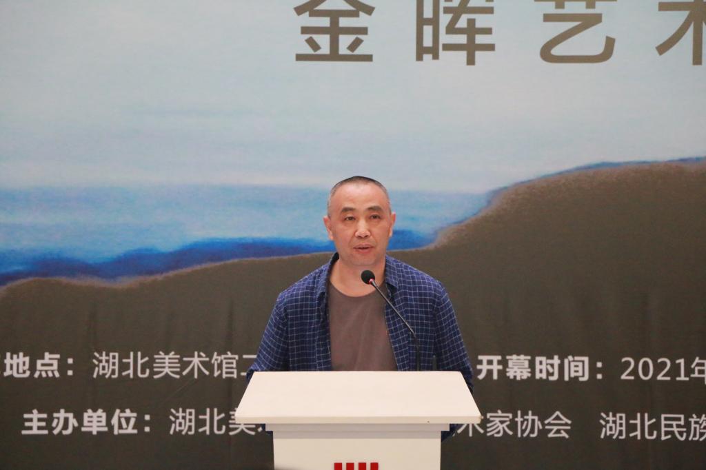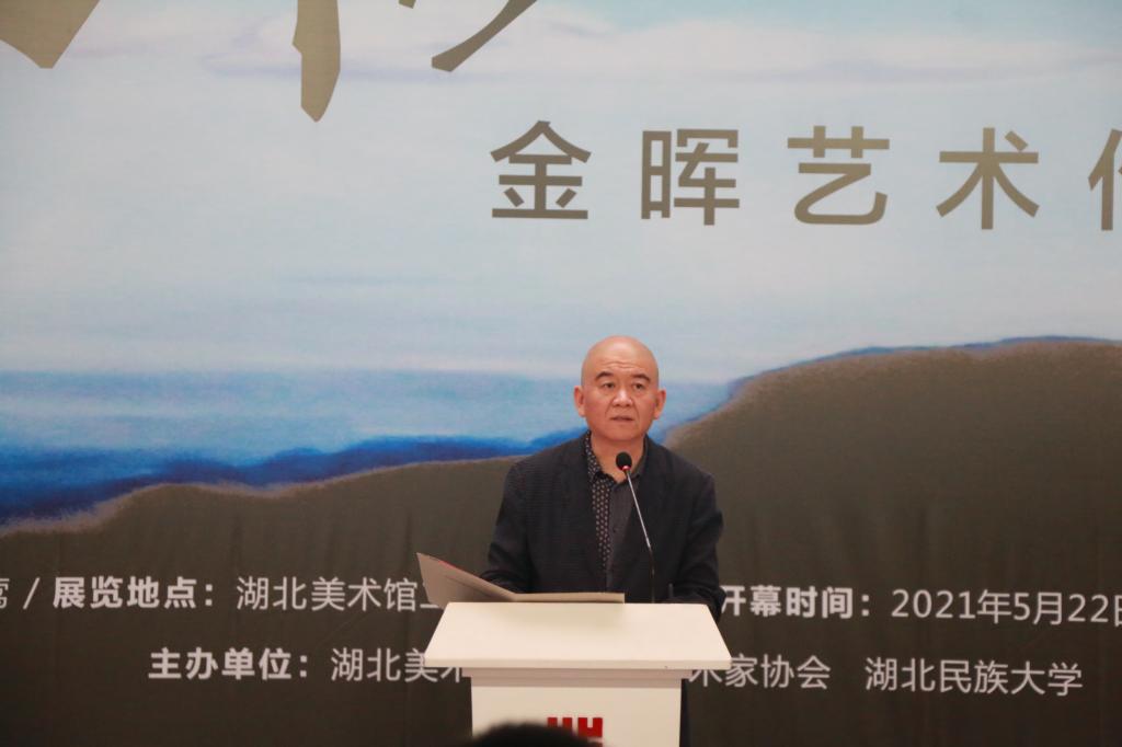 开幕式上湖北美术馆馆长冀少峰、湖北省美术家协会秘书长刘春冰先后致辞。湖北美术馆馆长冀少峰对金晖教授的作品给予精彩评论。最后湖北美术馆前馆长傅中望宣布展览开幕。参加本次开幕式的嘉宾还有华中师范大学美术学院副院长王文新教授、娄宇教授,中南民族大学美术学院长吴海广教授,湖北大学艺术学院副院长尹朝阳教授、潘锋教授,黄冈师范学院美术学院院长胡绍宗教授,副院长袁教授,美术学系副主任王雷副院长,湖北美术学院张昕教授,袁晓舫教授等。