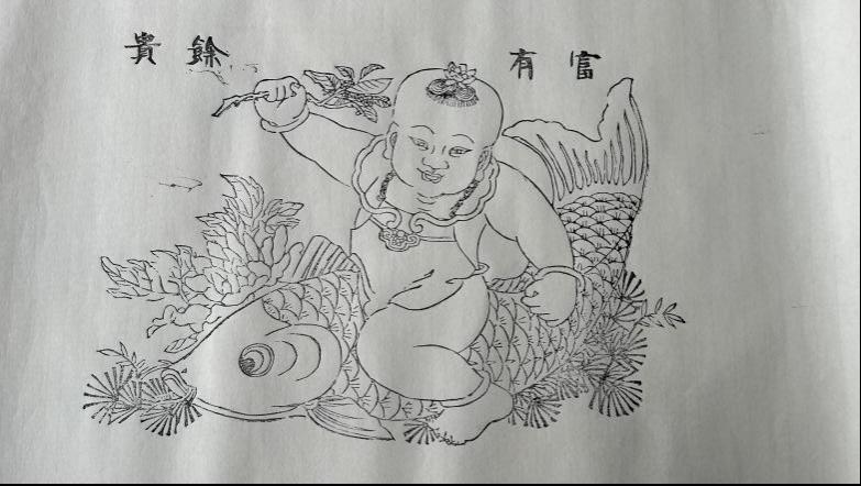 王琳杰先生展示自己雕刻的年画原版
