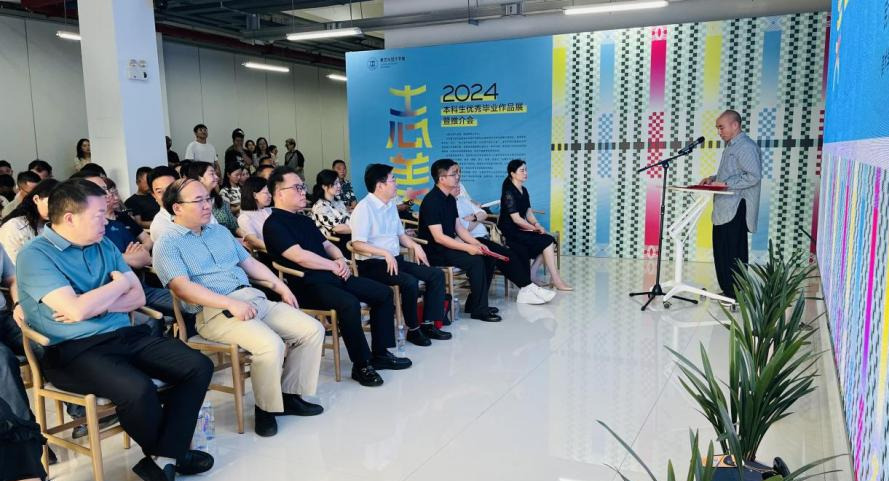 学院党总支书记田英在开幕式上致辞,代表美术与设计学院对莅临开幕式现场的领导、嘉宾表示热烈欢迎,表示本次展览是学院致力培养新时代德艺双馨美术与设计青年人才教育教学质量与水平的展示,学院期待通过本次展览与推介精准对接企事业单位用人需求,推动毕业生高质量就业,并进一步加强校地校企合作。2024届优秀毕业生代表王静同学表达了对母校和老师的培育之恩,踏入社会肩负的艺术创新之责。教师代表钟淏深情寄予毕业生顺利实现角色转换、在实践中锻炼成长、坚持青春的梦想的殷殷期盼。恩施州博物馆馆长董祖斌代表嘉宾致辞,他认为本次活动既是3044am永利集团3044noc美术与设计学院的整体学术发展脉络与实力展示,也是各位同学智慧碰撞青春飞扬的华丽定格!认为恩施地区的艺术文化与自然景观,不仅是高校科学研究的宝贵资源,更是艺术创作的珍贵源泉,这些展览作品中已经表达出这种情怀,展现出文化自觉和文化自信。同时,代表参与此次活动的企事业单位呼吁社会各方面和高校艺术创作群体密切协作,共同发力,创作出更高水准的艺术精品,为恩施社会发展、文化艺术繁荣做出更大贡献。开幕式结束后与会领导嘉宾参观了优秀作品展览,对作品的创作理念、技术水平、艺术形式和展陈方式给予了充分肯定和高度评价。