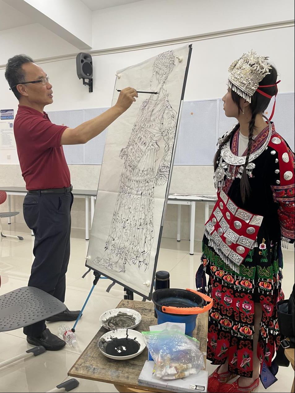 下午2:30在12栋C区301教室任惠中教授进行中国人物画写生教学示范,结合上午讲座知识,仔细向师生介绍了水墨人物的写生方法及要点,强调写生要投入感情,并以笔墨传达出来,着色不要太过拘泥对象,使画面形象“更”具模特特征,重在人物神韵的刻画与表达;强调作画过程中不要怕犯错,要因势利导使画面和谐起来。当日下午现场完成了着色人物写生作品1件、线描写生作品1件。任惠中教授的示范无不令现场师生大开眼界,收获满满。