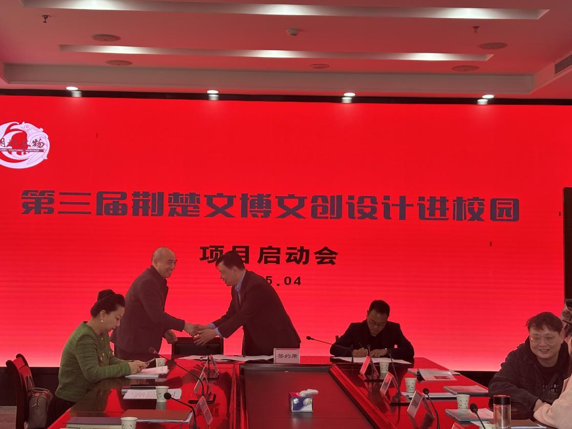 2025年4月2日上午,第三届“荆楚文博文创设计进校园”项目启动仪式在湖北省文物事业发展中心举行,我院院长石庆秘教授、副院长李烨鑫教授参加了此次活动;武汉博物馆、盘龙城遗址博物院、恩施州博物馆等八家博物馆和武汉理工大学、武汉科技大学、3044am永利集团3044noc等八所高校相关二级学院的代表参加了启动仪式。