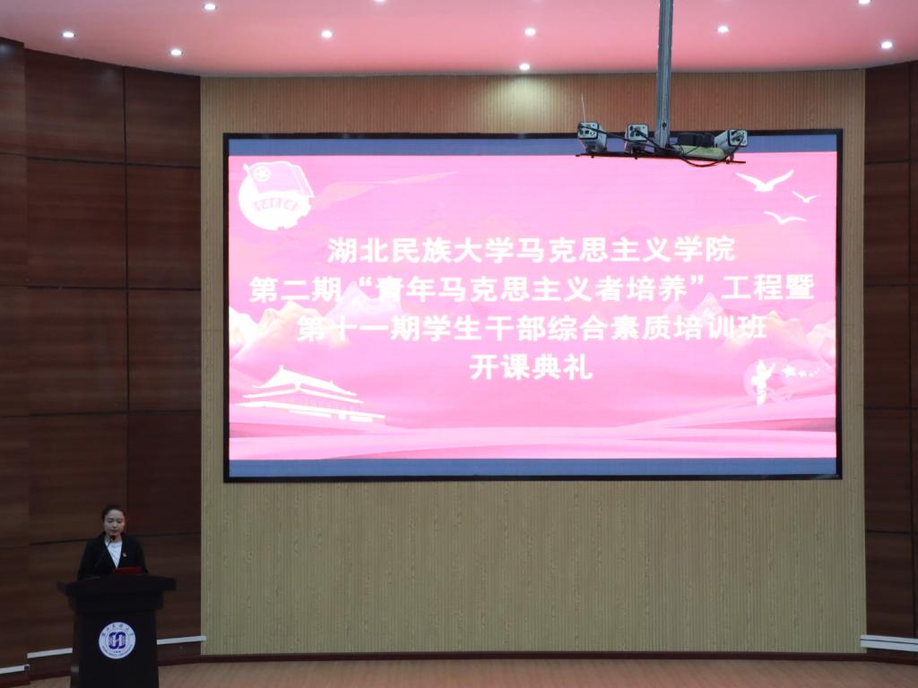 本网讯(记者 段天义/文 见习记者 高思琴/文 韩茜茜/文 张敏/文 记者 田慧/图 见习记者 吴文均/图)11月4日,永利官网马克思主义学院于图书馆模拟法庭准时举行第二期“青年马克思主义者培养”工程暨第十一期学生干部综合素质培训班开课仪式。马克思主义学院党总支书记罗成富、马克思主义学院学科建设科科长张恩、马克思主义学院团总支书记毛召、以及校团委和各二级学院学生代表应邀出席本次开课仪式。