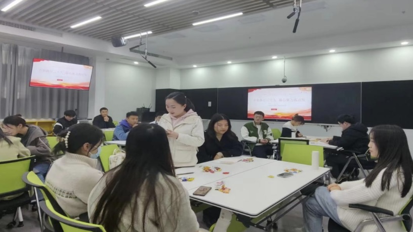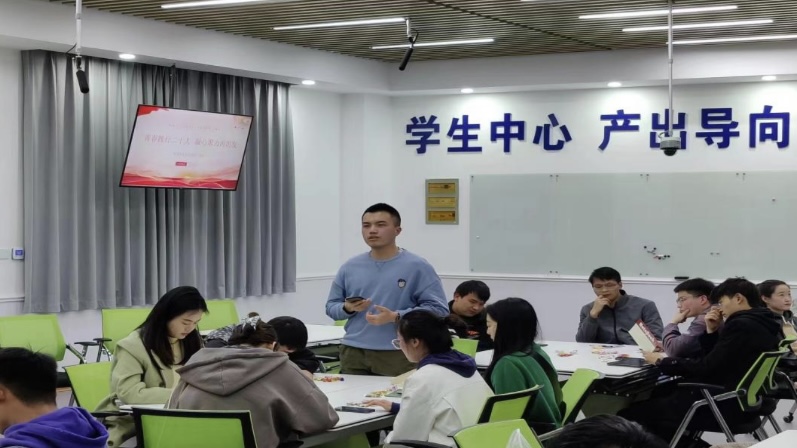 会议分四个阶段进行。第一阶段,同学们齐唱团歌《光荣啊,中国共青团》。第二阶段共同观看由中国政法大学郭继承教授讲授的思政课视频《国运》。第三阶段各组分组讨论,畅谈感受,学生干部纷纷结合自身谈感受,文学与传媒学院冯朝林同学表示作为中国人要坚定民族自信心,要充实精神世界,明确理想信念。