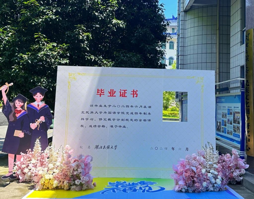 为给2024届毕业生更有仪式感的毕业季,学院精心布置了毕业打卡景观,让同学们在挥手告别之际,与母校最后一次同框。每一帧都是回不去的青春,毕业生用镜头定格灿烂的笑容与珍贵的回忆。快门按下,时光的脚步浅浅地过,在他们的生命中留下了深深的印记。