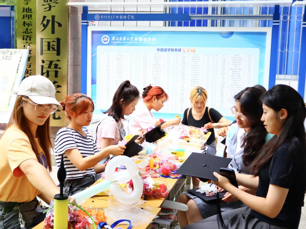 始于金秋,启航盛夏。又是一年毕业季,又是一朝出发时。为加强毕业生与学院的情感联系,护送毕业生温暖离校、文明离校,外国语学院举办了学士帽簪花、毕业生留言、毕业打卡等系列活动,为毕业生的大学生活画上圆满的句号。