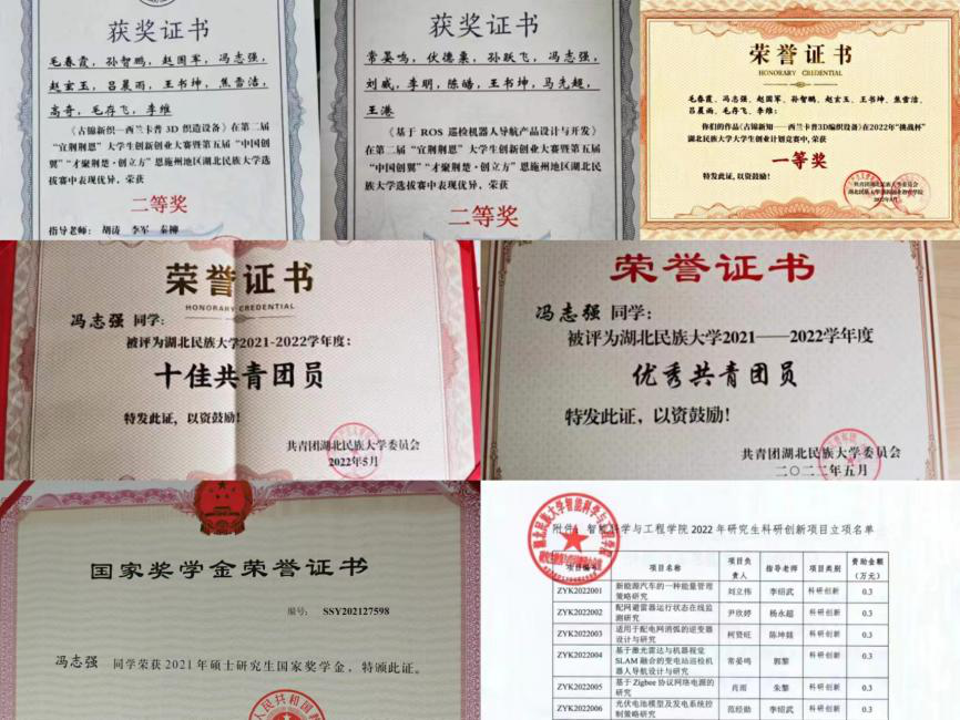 注:他曾获得2021年度研究生国家奖学金和一等研究生学业奖学金,作为第一作者发表一篇 EI 学术会议论文《Electrical insulator defects detection method based on YOLOv5》和一篇实用新型专利《一种高层混泥土裂缝无人机检测装置》,他曾多次参加省级校级竞赛并取得优异成绩。