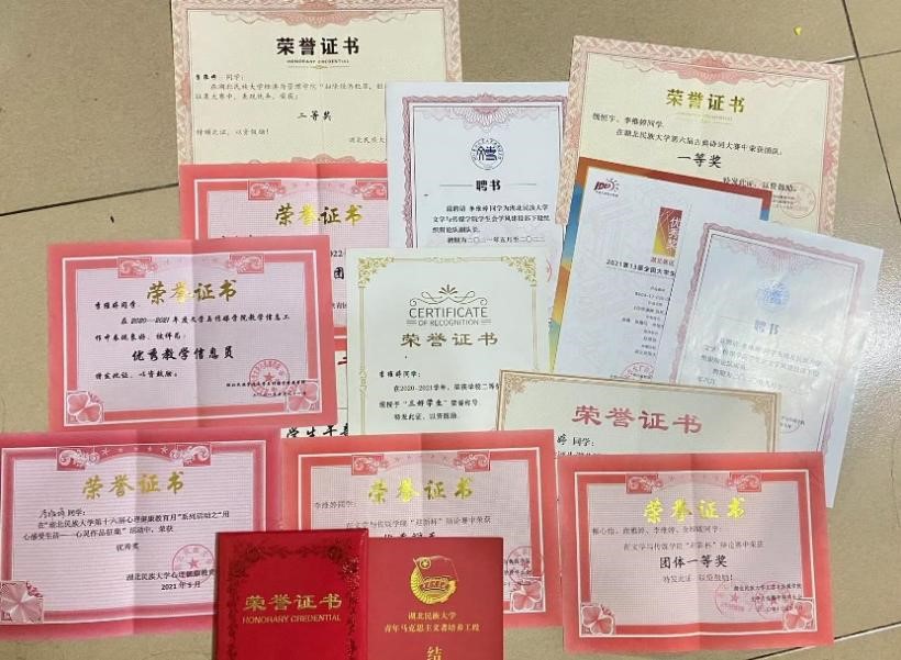 注:李维婷曾连续两年获得奖学金;“全国大学生学院奖”入围奖;“大学生创新创业大赛”项目省级银奖、校级金奖;“全国大学生广告大赛”省级优秀奖;连续2年获“三好学生”表彰、孝感日报社文章出版3篇;3044am永利集团3044noc“启真杯”辩论赛“优秀辩手”;连续2年获校“优秀学生干部”“优秀共青团员”表彰;3044am永利集团3044noc古诗词大赛团体一等奖;文学与传媒学院“迎新杯”辩论赛一等奖及“优秀辩手”表彰。