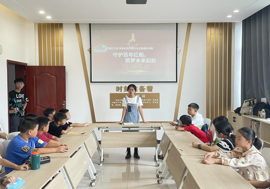 在精神堡社区,团队通过诗歌朗诵、红歌传唱的形式,将百年红船精神注入孩子们的心中。大家用歌声唤起爱国之情,传承民族信仰。