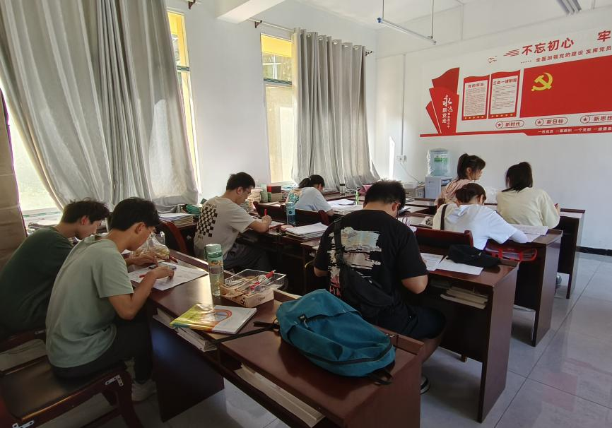 支教团成员批改试卷