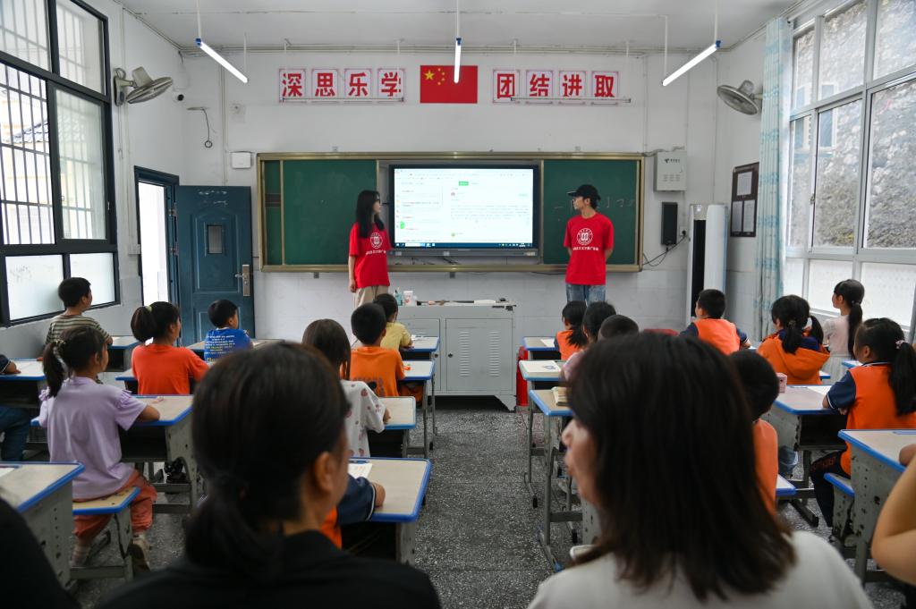 其中,“普通话课”围绕“朝”字展开互动性教学,团队成员从口部操、声母和韵母练习及多音字辨析等环节进行话题讨论,现场示范和教学普通话的正确发音和流利表达,引导孩子们字正圆腔说地普通话。同学们表示,通过此次课程的学习,对于普通话水平的提升有很大帮助。
