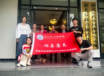 6月24日,永利官网硒辰康养社会实践调研队前往恩施市白杨坪镇麂子渡村新北辰康养旅居基地开展调研活动。`