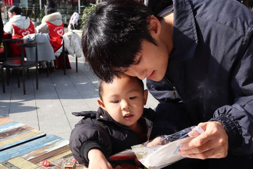 志愿者教导孩子复刻传统纹样
