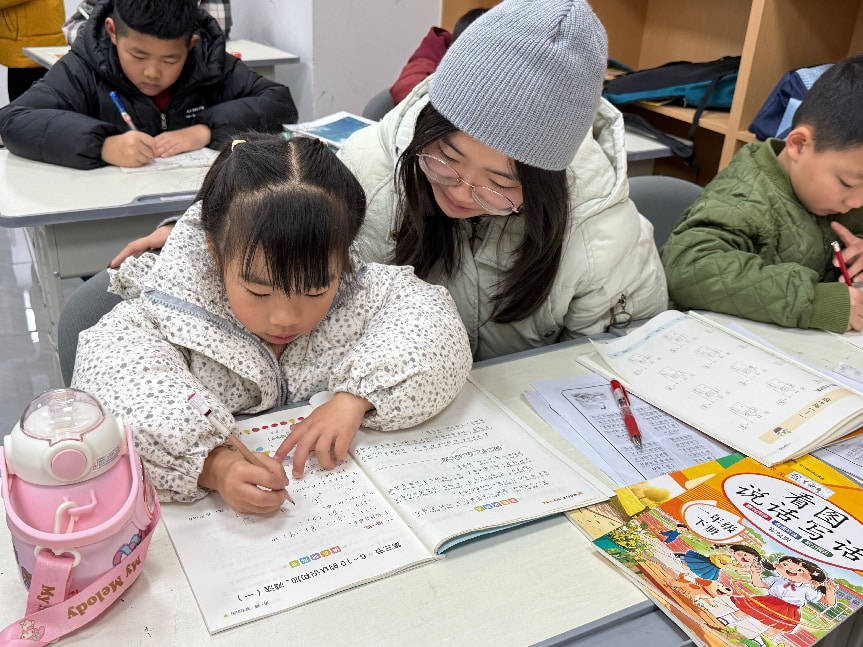 本次托管班创新打造“课业辅导+素质拓展”双轨服务模式,依托智航托管中心优质场地资源,整合永利官网志愿者专业力量,精准匹配不同年龄段学生需求。课业辅导环节,永利官网志愿者化身“爱心园丁”,采用“一对一精准辅导+小组互助学习”的模式。低年级侧重读写基础巩固与学习习惯培养,高年级聚焦重难点突破与自主学习能力提升。志愿者们耐心解答学习疑问、梳理知识脉络,既助力孩子们高效完成寒假作业,更注重传授科学的学习方法、激发其内在学习兴趣。课堂上,笔墨书香与互动暖意交织,学习氛围浓厚而温馨。