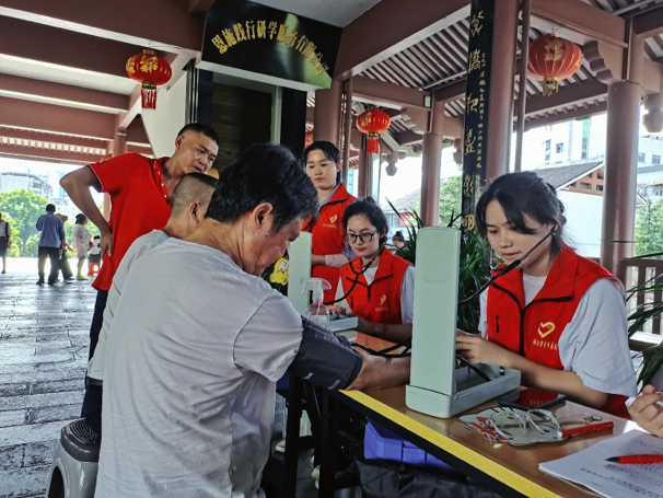 在为期10天的活动中,团队成员前往恩施州机场路等社区开展了免费血压测量、肩颈部推拿手法操作、慢性疾病及急救知识等健康知识宣讲、健康操学习与经验分享、老党员采访与慰问等健康助老志愿服务活动。