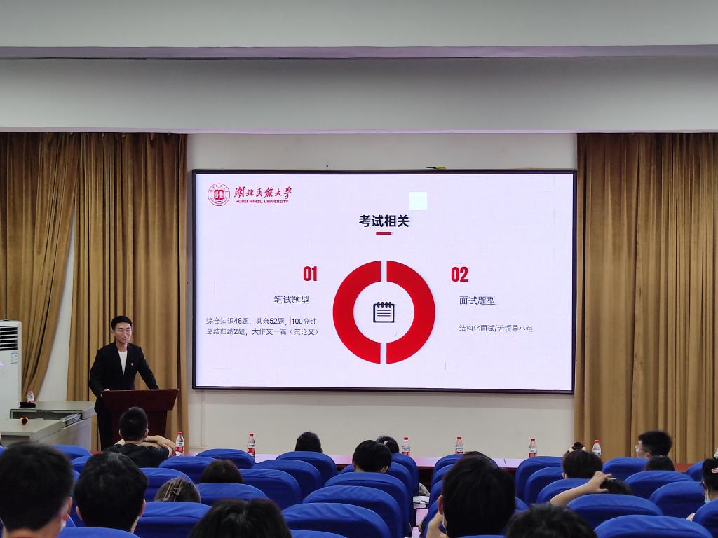 四位学长学姐结合自身实际分别从考公、考编、考研三种不同方向分享自己的经验,并对学弟学妹提出针对性的建议,现场解答疑问。曾尹从选岗、行测、申请、备考作息、心态调整五个方面介绍自己在备考阶段、面试阶段的独特方法,回答学弟学妹在国考、省考、选调生、面试流程及形式、备考资料以及培训班方面的问题。王香香也分享了自己的上岸华科的经验。首先要学会提前预习,对所学知识有个初步了解;其次要寻找一个提高学习效率的办法,分层次整理学习笔记,标记重点和难点;最后独立完成作业,着眼加深对原理的理解和思考方法的培养。