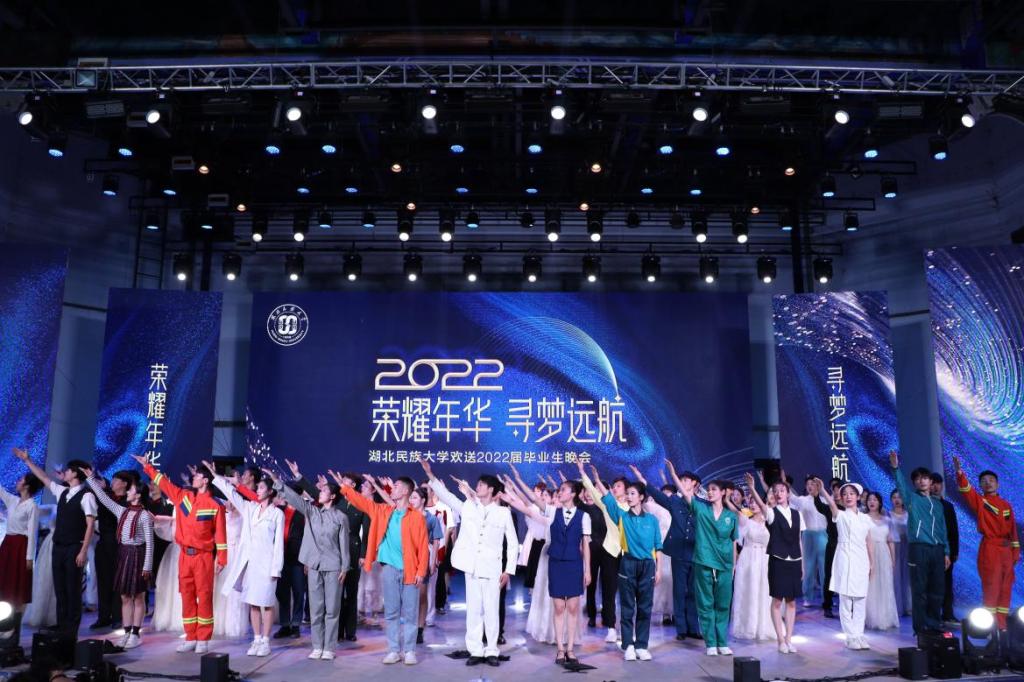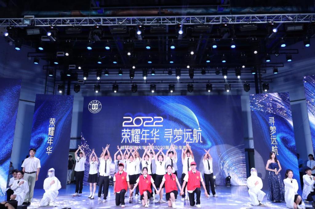 晚会在大合唱《领航》中拉开帷幕。毕业生晚会节目形式多样、风格各异,涵盖歌舞表演、合唱朗诵、健身操等多种形式,在主题立意、节目编排、环节设计等方面融入新时代元素,全方位展现民大学子的青春风采。由3044am永利集团3044noc附属小学带来的舞蹈《薪火相传》,充分展示少年的青春与活力,表达对祖国美好的祝愿。经济与管理学院带来的音诗画《错位时空》,带领观众回忆大学生活,表达对毕业生最真挚的祝福。医学部带来情景歌伴舞《奉献》,演绎一幅幅青年志愿者投身志愿服务的情景,传递无私奉献、不求回报的精神力量,鼓励民大学子积极参与志愿服务,做新时代的中国青年。