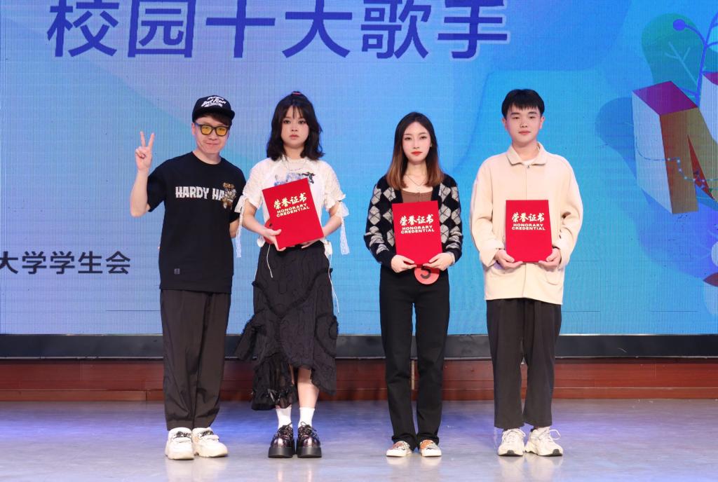 比赛伊始,十位选手共同亮相,以一首《青春》唱出青年不愧时代、不负韶华,昂扬向上的人生态度,彰显出永利官网学子的生气蓬勃;四号选手黄奕深情演唱《父亲写的散文诗》、《屋顶》,歌声温柔悠扬、婉转动听,抚慰听众内心,屡屡引发共鸣;五号选手张芮洁对于《裹着心的光》的歌唱也令人称赞,她以独特鲜明的音色和轻松欢快的舞台氛围为观众带来一场视听享受;八号选手苏杭极致演绎歌曲《保留》,将内心的挣扎与踌躇表现的淋漓尽致,触动人心,现场掌声雷动;谭若冰老师倾情献唱《本草纲目》,希望永利官网学子要坚定文化自信,传唱文化经典,用歌声讲好中国故事。最终,来自生物科学与技术学院的闻医以9.812的高分荣获本次大赛的冠军。