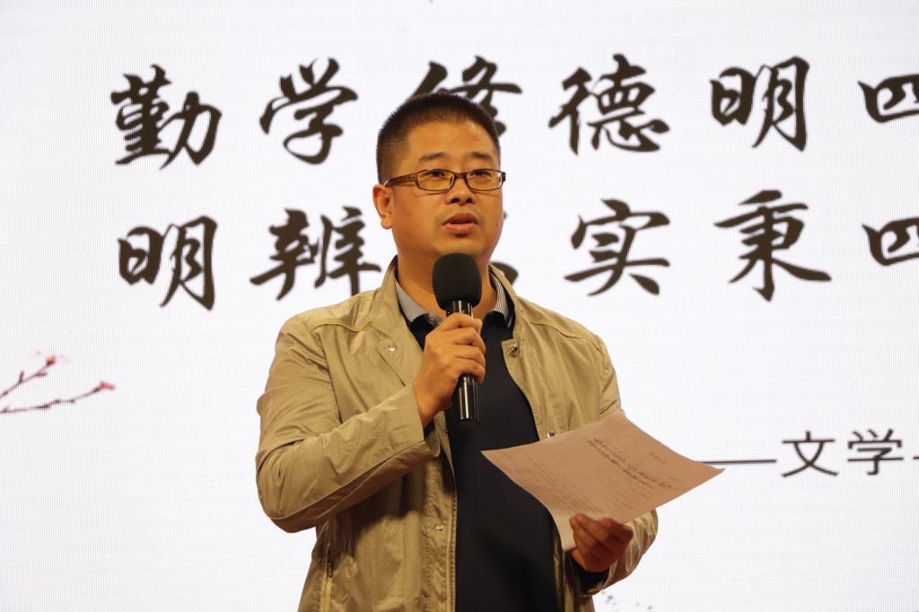 本网讯(记者 黄玉晶 张玉婷/文 王普 覃文鑫/图)9月26日晚,由永利官网文学与传媒学院总支部委员会部举办的“百生讲坛”演讲比赛总决赛于文学与传媒学院演播厅举行。文学与传媒学院老师代表李勋灿、宋俊宏、范生彪受邀出席本次活动并担任评委,现场观众约100人。