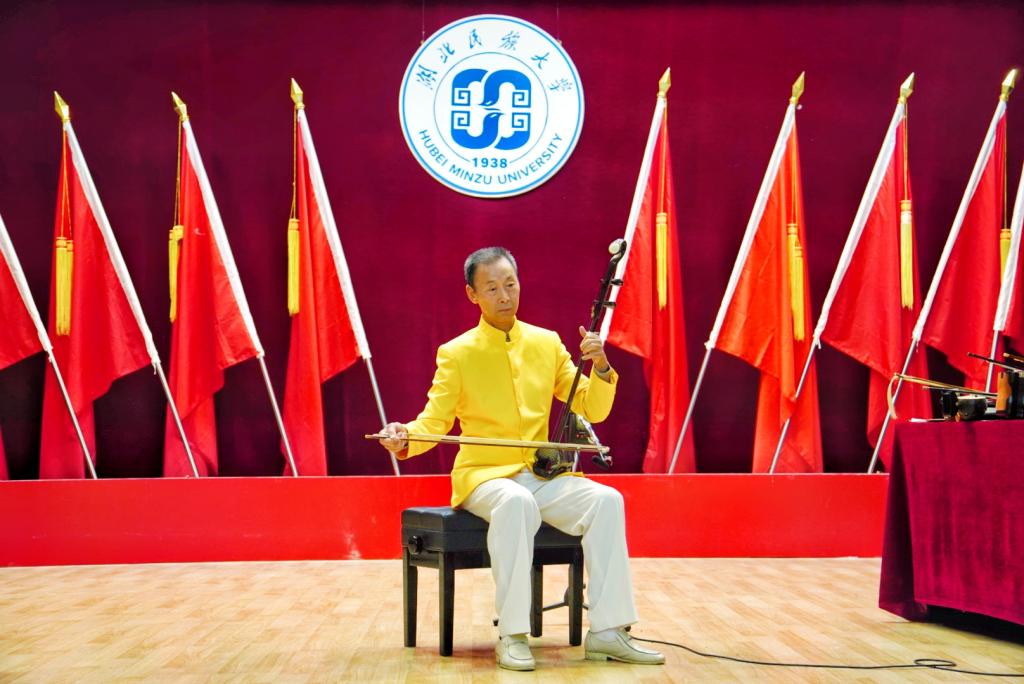 10月8日晚,由校团委主办的“高雅艺术进校园—胡琴音乐艺术鉴赏”活动在行政楼1号会议室举办。本次活动特邀一级演奏家车定祥教授授课,校团委书记吴珊,音乐舞蹈学院党总支部副书记邓丽出席本次活动,来自各学院(部)的师生代表共三百余人参与活动。