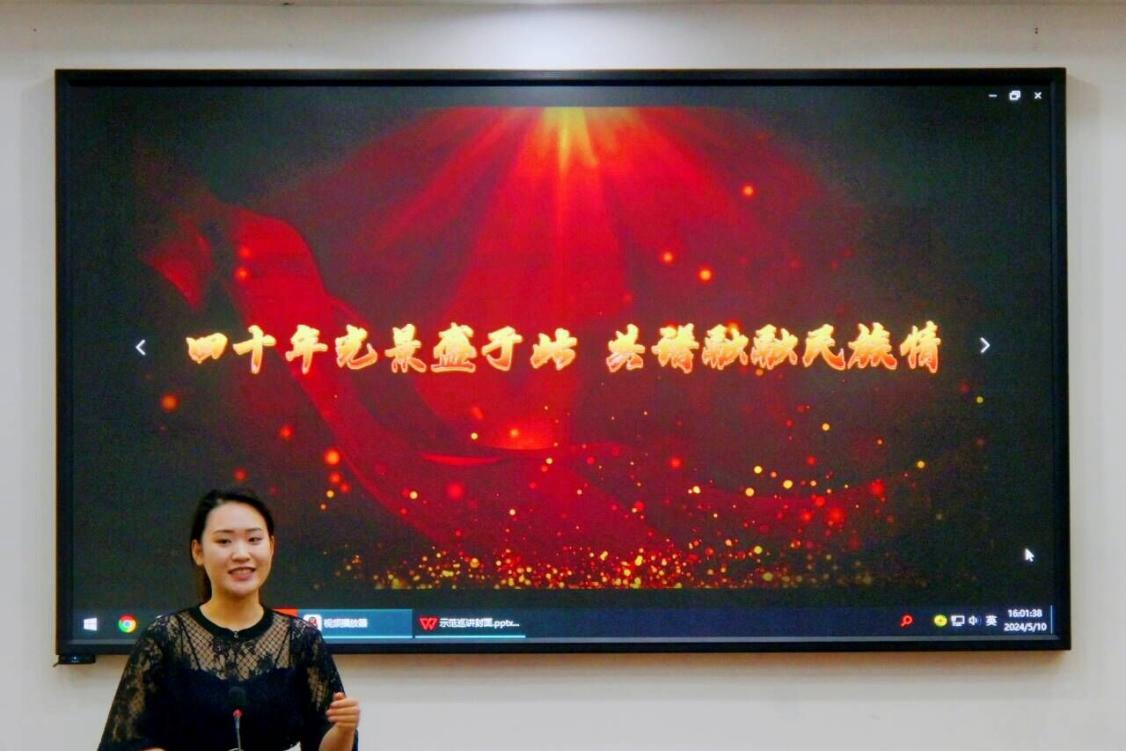 崔钰婕以张富清老英雄在恩施州来凤县带领土苗儿女开路修渠的感人故事为开篇,深情讲述了自己关于民族团结的亲身经历。她讲到,站在新的历史节点上,播撒民族团结的种子,铸牢中华民族共同体意识,是我们青年的使命。她表示,将继续为民族团结贡献青春力量。