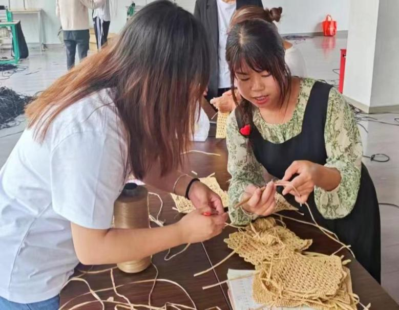 在草编技艺传承人助理舒老师的带领下,实践队成员们深入草编制作基地,利用不同的草料,亲手编织出多样的图案,切身体验了这项源远流长且技艺高超的手工艺。